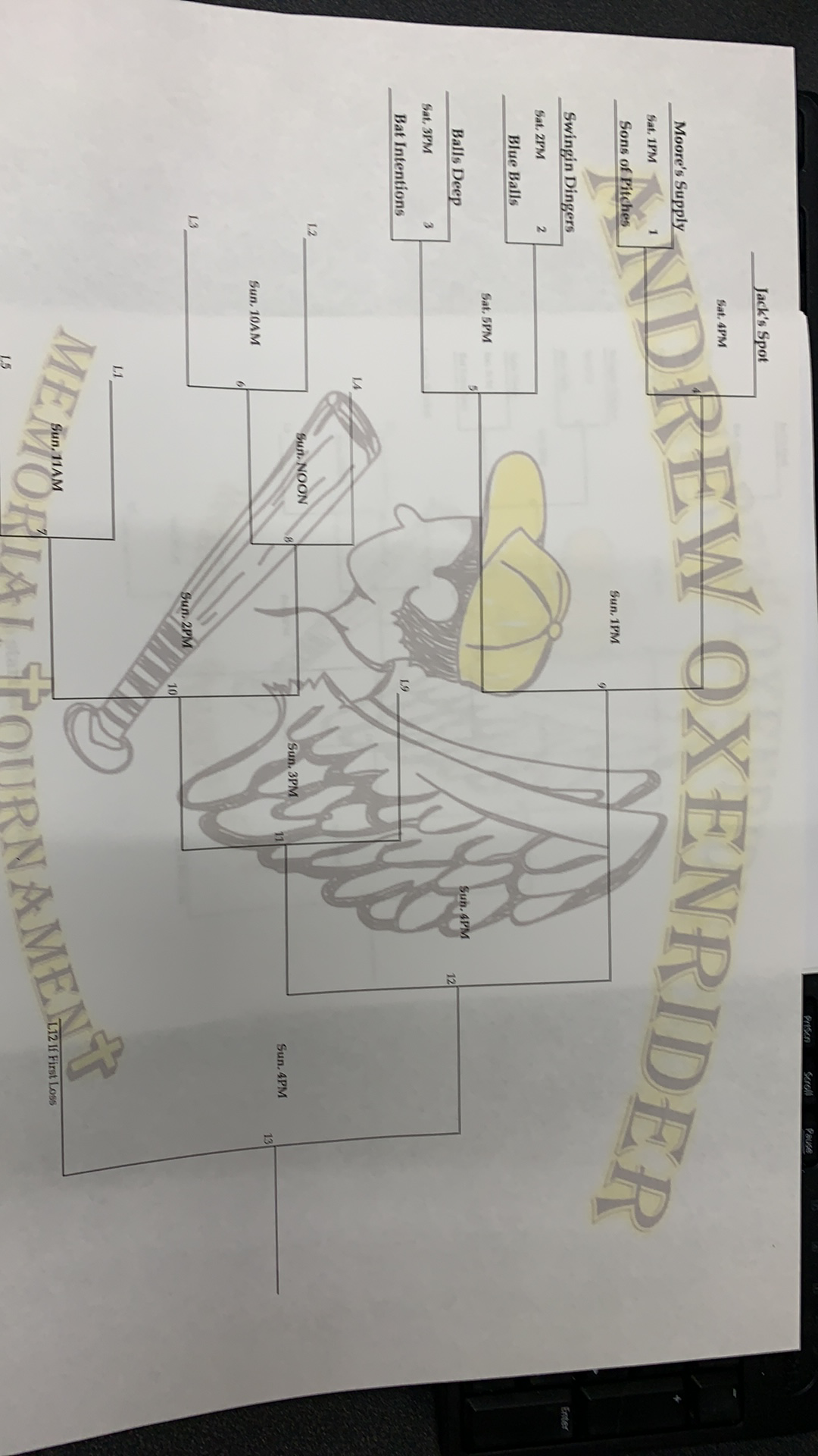 We will have a few raffles – all of which will be posted on our better world page (Andrew Oxenrider Memorial Tournament on BetterWorld) where you can purchase tickets in advance. We will be selling chances throughout the tournament where you can purchase tickets via cash, venmo or paypal. We will cut off online purchasing at noon on Sunday so that we can get everything organized to be able to draw winners. In person cut off with be at start of championship game, slated to start at 4:10pm as of right now.